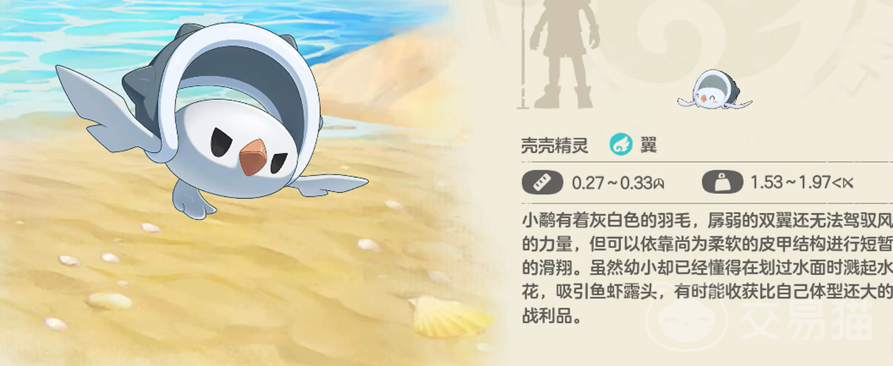 在游戏中小鹬属于飞行系精灵,外貌是一支托着甲壳飞行的小鸟,玩家如果想要在游戏中获得小鹬可以在上午前往月兔暗港的右下角探索,地图中会随机刷新不同等级的小鹬,玩家可以携带一只火系精灵,这样能够更轻松地捕捉小鹬。