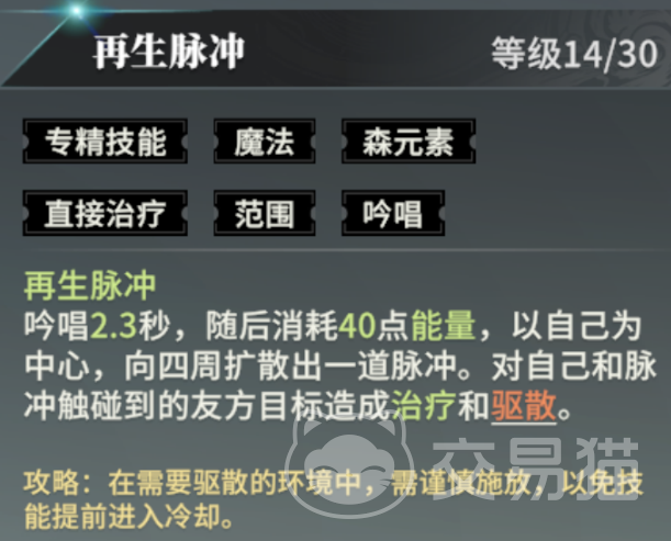 再生脉冲:必带核心技能。虽然需要站桩释放,治疗需等冲击波碰到队友才能生效,存在一定风险,但奶量高、CD短,是值得信赖的群奶手段。优先升级,愈合流优先进阶。