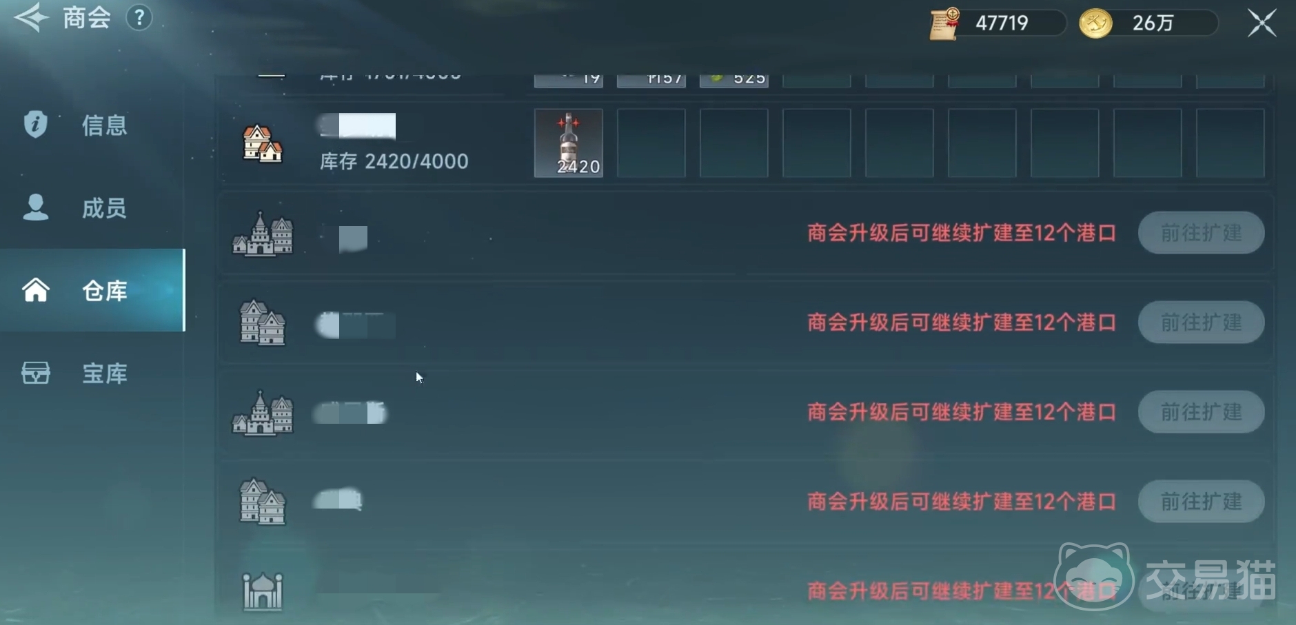 但要注意,商会仓库并非是一开始就有很多的,而是会在商会升级后逐步扩建到各个城市。玩家们也只能在已经扩建了商会仓库的城市来使用仓库功能,未扩建的仓库的城市则没办法打开仓库,这也使得商会的升级对每名玩家来说都非常的重要。