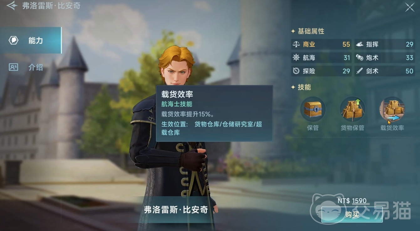 对于喜欢进行商贸的玩家来说,比安奇所具有载货效率提升15%的能力非常有用,而且他自身的商业值在一众航海士力也属于较高的那一批,值得招募。