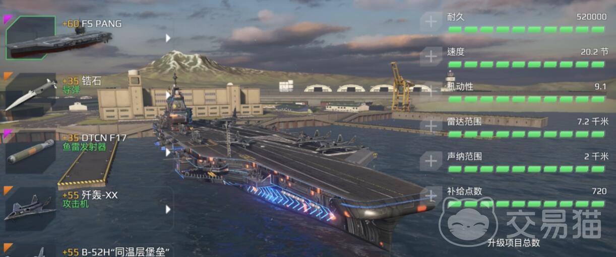 PANG需通过活动礼包获取,属性均衡且生存能力较强。它搭载战斧导弹与多型号舰载机,适合远程骚扰和消耗战。推荐配置F35B(垂直起降)负责侦查与反潜,死神无人机(对地轰炸)清理据点。实战中保持10公里以上距离,用导弹干扰敌方阵型,避免正面交锋。缺点是缺乏战斗机,需依赖队友点亮灯。