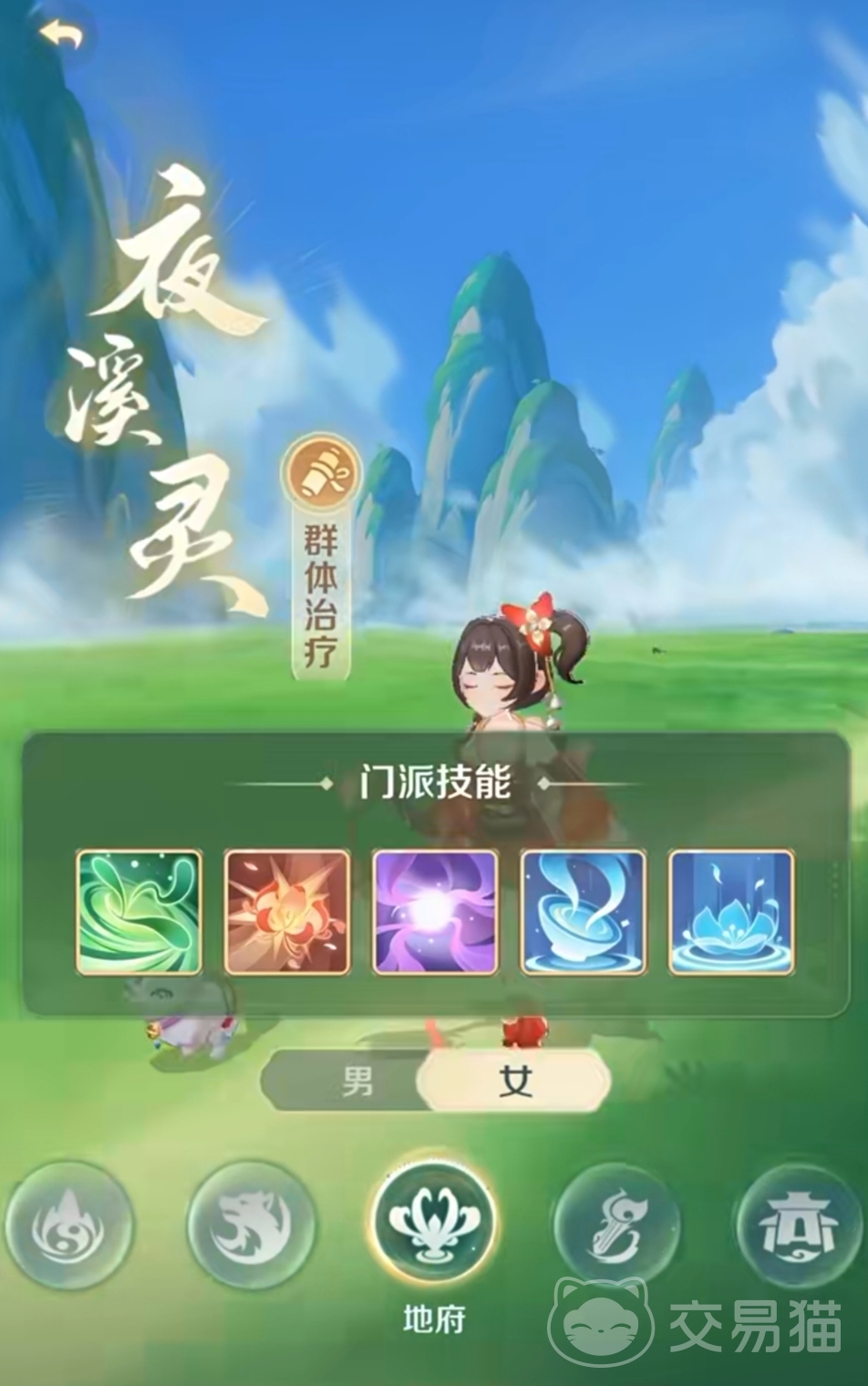 职业之二,地府职业。这是一个可以给团队带来治疗效果的职业,在队伍中担起辅助的位置。一技能可以对队友造成治疗的效果,最多可以对五名队友有治疗效果,二技能可以对敌方造成群体法术伤害,敌方血量越低,伤害就越高,大招可以召唤花灵,强化技能。