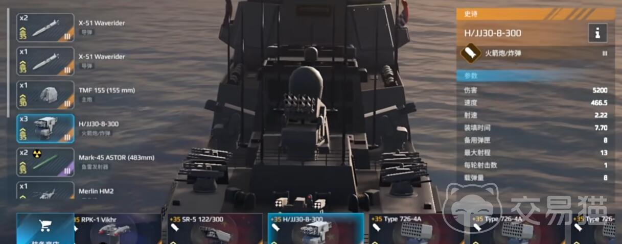 导弹推荐鹰击12A或海科导弹。鹰击12A伤害高,一次能打两发,适合压制对面驱逐舰;海科导弹的路线比较灵活,能干扰对方防空系统。主炮选黄浦江45B,射速快还带防空效果,打直升机特别方便。火箭炮用726-4A,近距离爆发高,清潜艇或者脆皮船很快。鱼雷必带黑鲨,锁定快伤害足,反潜和打船都好用。防空用730C或者铠甲M,730C拦截导弹快,铠甲M适合中远距离防御。