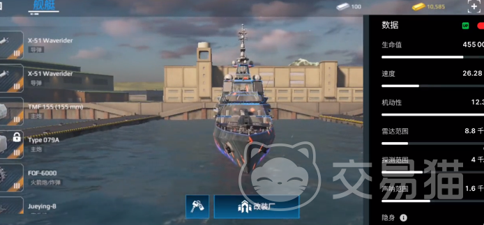 基础的属性还是比较出色的,有455,000的耐久性,另外机动性还有速度都很不错。雷达的距离大概是8.8千米,深大的范围是1.6千米,要说比较遗憾的,就是没有隐身功能。
