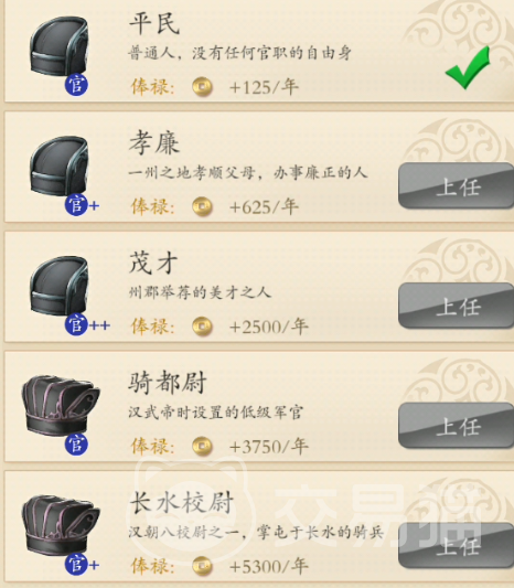 除此以外咱们也可以通过做官来获取固定的收益,做官的话对于本身的知识要求也是比较高的。玩家们因为前期获取资源的渠道不多,所以需要储备好自己的铜币,之后进行读书来获取知识。