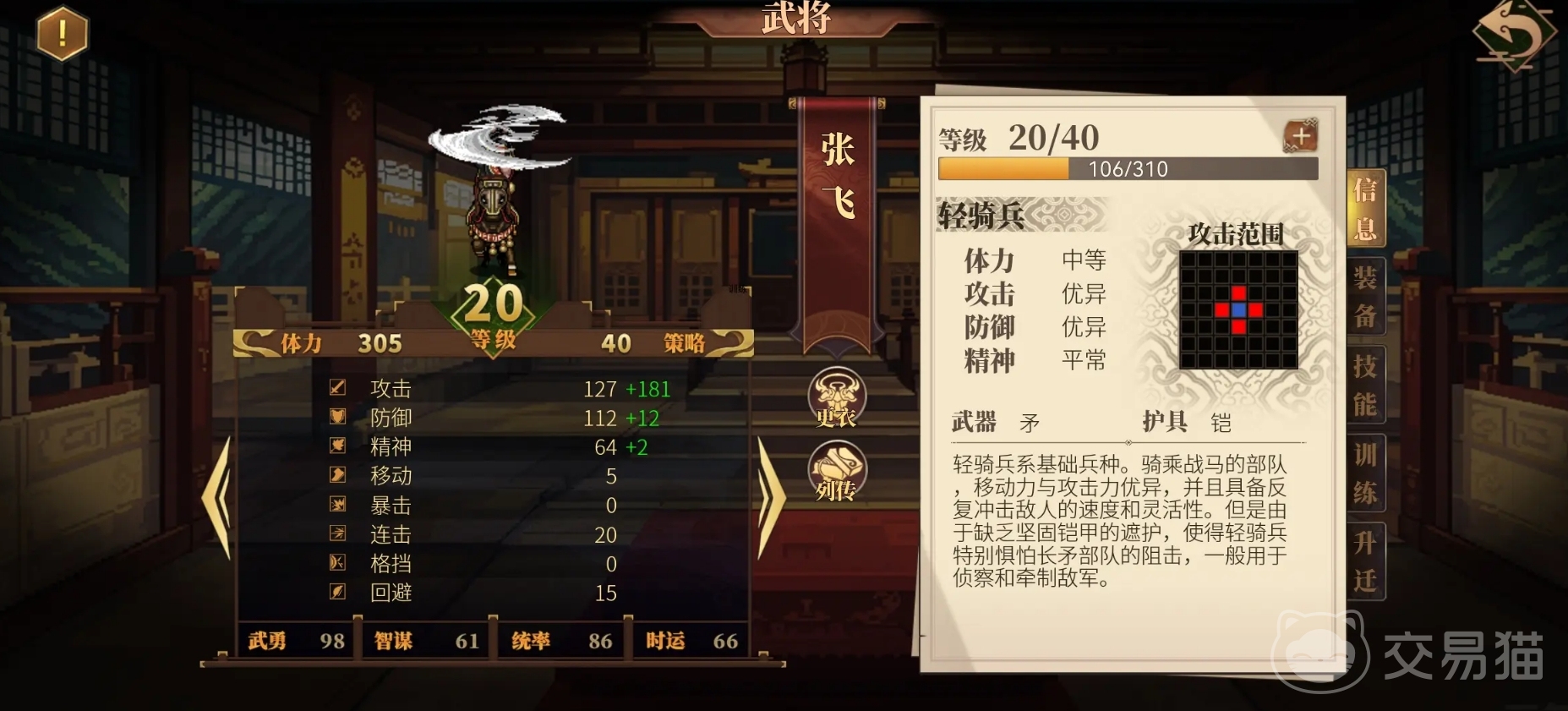 建安外史是一部以刘备为主角的三国类游戏,它以传统战棋玩法为核心,每位角色在当前回合行动后都无法继续进行任何动作,只能等待下一回合再进行行动,所以在战斗中会有非常强烈的策略博弈乐趣,很考验人们对战局的把握。同时游戏也为武将设计了升迁和转职玩法,可通过升迁来为武将升级,并在达到一定等级后能进行转职,获取新技能和属性成长方式。