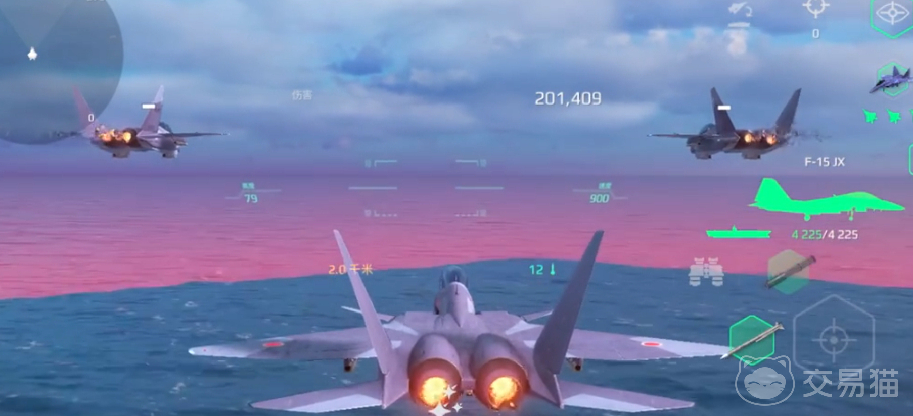 首先是关于F15jx的各项属性值,在满级情况下,它的耐力值为4225,速度113.7节,机动性136.5,雷达范围8千米,最高时速134.7节,航空储备12件。在实战中,F15jx的最高速度为900,中速为760,最低速度为233。俯冲最高速度为980,中速为826,最低速度为253。在机动性能上,F15jx旋转一周用时为4.23秒。在速度上,F15jx的表现是非常不错的,但是机动性较差。