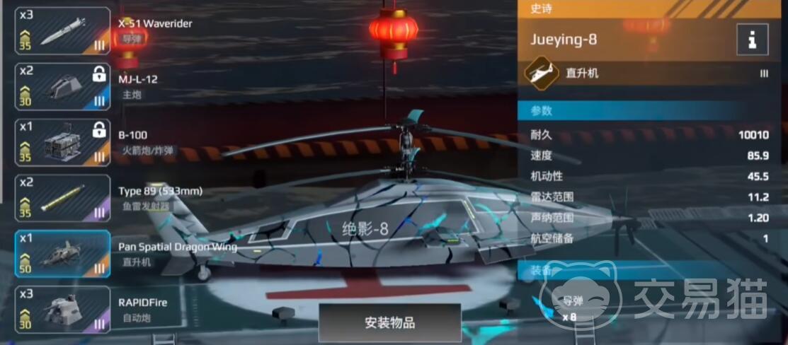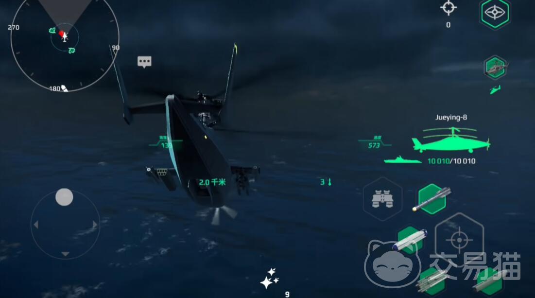 绝影8的核心功能是侦查,雷达范围达到4公里,比卡叉叉(3.5公里)更广,能更快发现敌方潜艇、驱逐舰等目标。速度约85节,属于中上水平,适合快速绕场探测。武器方面,导弹伤害较低(单发约1万),火箭炮射速一般,主要作为辅助输出。相比其他直升机,它的优势是“点灯快”,但打伤害依赖主战舰配合。