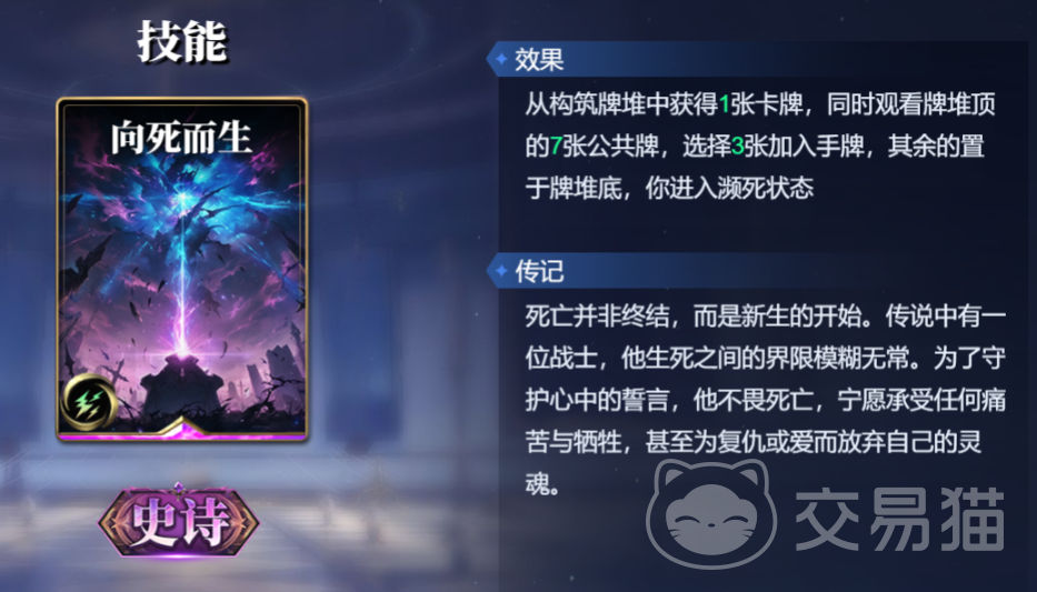 并且还有经典的名言,在游戏中他的能力也是非常不错的,初始的攻击力有三点,并且有25点的血量,首先就是被动技能不屈的意志可以来增加自己的攻击力,生命之每减少十点就可以来增加三点的攻击力,还有一个主动的技能炽焰启示,玩家们可以丢掉一张公共牌来选择自己想要攻击的目标,造成两点的法术伤害。每一个回合限定一次。