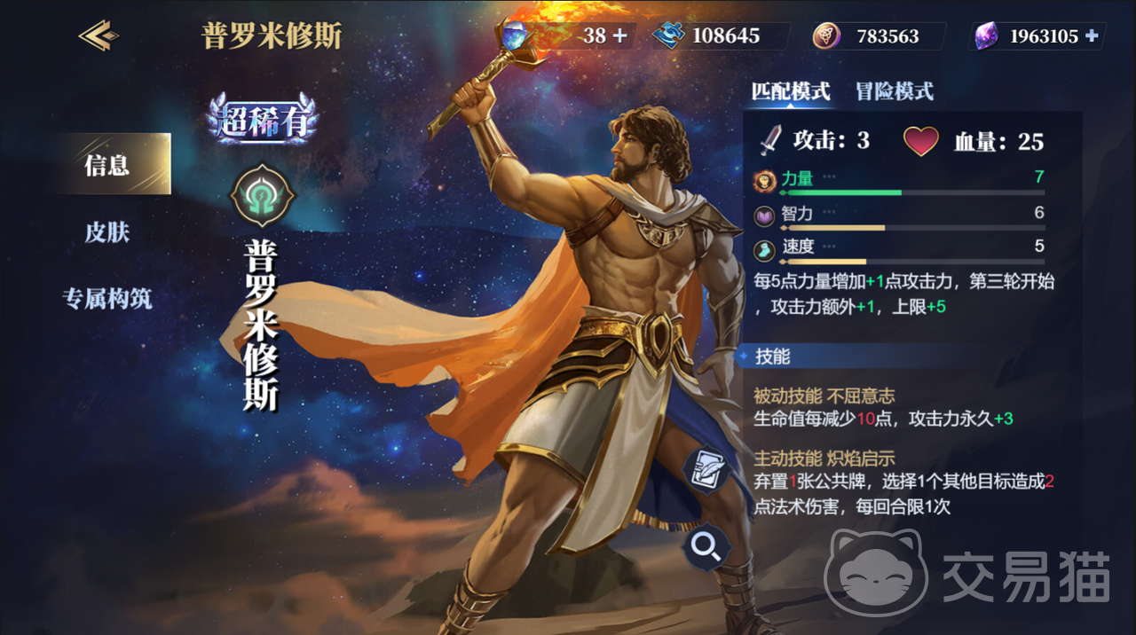 那么以上就是关于诸神竞技场普罗米修斯介绍的内容,还是非常推荐大家来选择这个角色进行使用的,后续大家还可以搭配相应的技能以及武器,还有装备等等,能更好的提高他的伤害,游戏中的卡组和组件思路是非常重要的,后期可以合理的搭配。