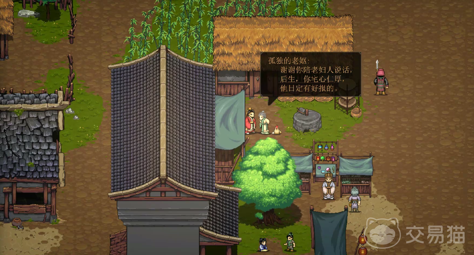 玩家如果来到了涿县,需要帮助刘备驱逐入侵的鲜卑族,这时候玩家要战斗,也可以通过对话来解锁隐藏的剧情。在战斗之前可能会跟npc进行互动,对话的时候会跟衣料坊的小偷,买菜的妇人,太学生等等角色进行互动。