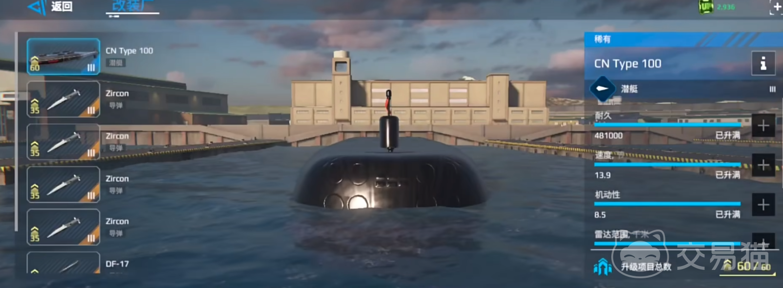 玩家在战斗的时候如果选择了100型潜艇,那么熟悉基本的操作,肯定是重中之重之后。在战斗的时候,由于它特别的灵活,玩家需要找到最佳的作战位置。在武器搭配方面,二级主炮建议选择210型炮或者是博福斯隐身舰炮。毕竟这些炮的射程比较远,伤害性比较高。在导弹选择方面,建议玩家直接选择紫色稀有度导弹,不过具体情况也需要具体分析。