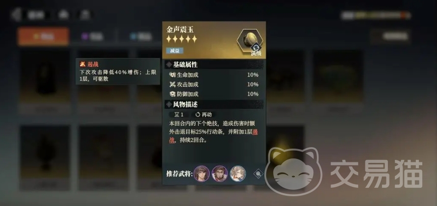 张飞建议携带金声震玉,以其初始104的高速,先手施放大招,对敌方全体造成推条效果,并降低最高70%的增伤,有这样的装备搭配,这个阵容在PVP战斗中只要玩家之间的属性差距较小,血量上限也不高,阵容中的关羽秒杀效果就更容易触发,一旦滚起雪球,便很难被对手逆转,而在PVE战斗中,面对单体BOSS关卡,张郃的三重破防机制能够大幅降低BOSS的减伤,让关羽能够打出极高的伤害。
