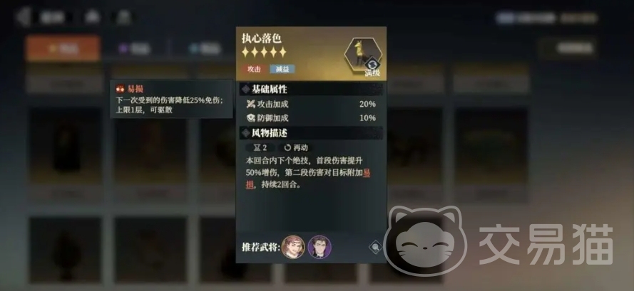 赵云可以转职为突击手,增加前几回合的时序,让他能够更快速地补刀,而蹇硕建议为转职领袖,这样就可以为全队提供15%的增减伤,在风物的选择上,同样需要精心搭配,关羽推荐携带关山听雷,使得大招造成伤害后,还能再造成一次40%的衍生伤害,相当于对最终输出结果翻了1.4倍,而张郃建议携带执心落色,这样就可以获得天赋和职业之外的第三重破防效果,让敌人在面对关羽时更加脆弱。
