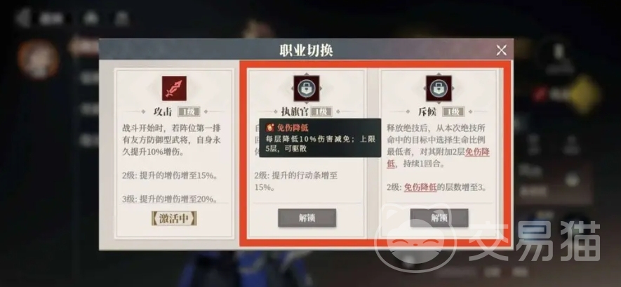 而张郃可以转职为斥候,这样则能在关羽之前施放大招,不仅触发了自身的天赋降免伤25%,还能额外获得斥候职业的30%降免伤,两重降免伤叠加,极大地提升了关羽的伤害输出,让关羽的每一次攻击都如致命一击,还有张飞可以转职为战狂,将防御的50%转化为攻击,让他在战场上既能抗又能打,刘备则是转职为将军,通过普攻邀战主C进行额外攻击,不仅提升了队伍的输出能力,还进一步强化了与关羽的连携效果。