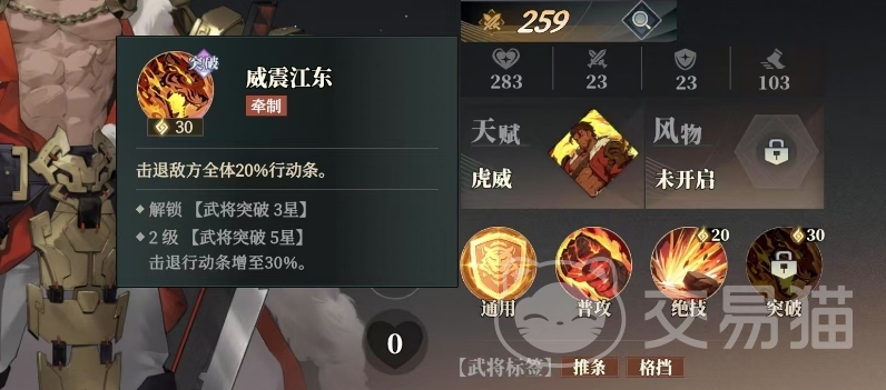 孙坚的技能效果使得对手在承受高达121%的物理伤害的同时,还要面临行动条被击退20%的困境,且孙坚的技能还能为目标附加一层独特的威慑状态,这一状态下的敌人,其伤害输出能力将直接降低15%,这样的技能组合可以说他是一个很好用的控场大师了,所以无论游戏处于哪个阶段,孙坚都是一位值得培养的武将,他的真正价值在于与对敌人行动的有效限制效果。
