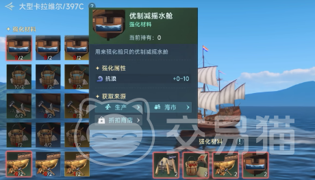 有一些船只很可能根本就没有办法抵抗大风大浪,因此在海上航行就会受到影响,此时要想强化就需要强化整体。可以进入到强化的页面,这里其实就能看到玩家目前所拥有的船只,然后去挑选一个自己所想要提升的货船。不过在提升时还需要了解,如果强化货船,主要是提升抗浪方面的优势。如果想要更加稳定一些,就需要优质的减摇水舱。