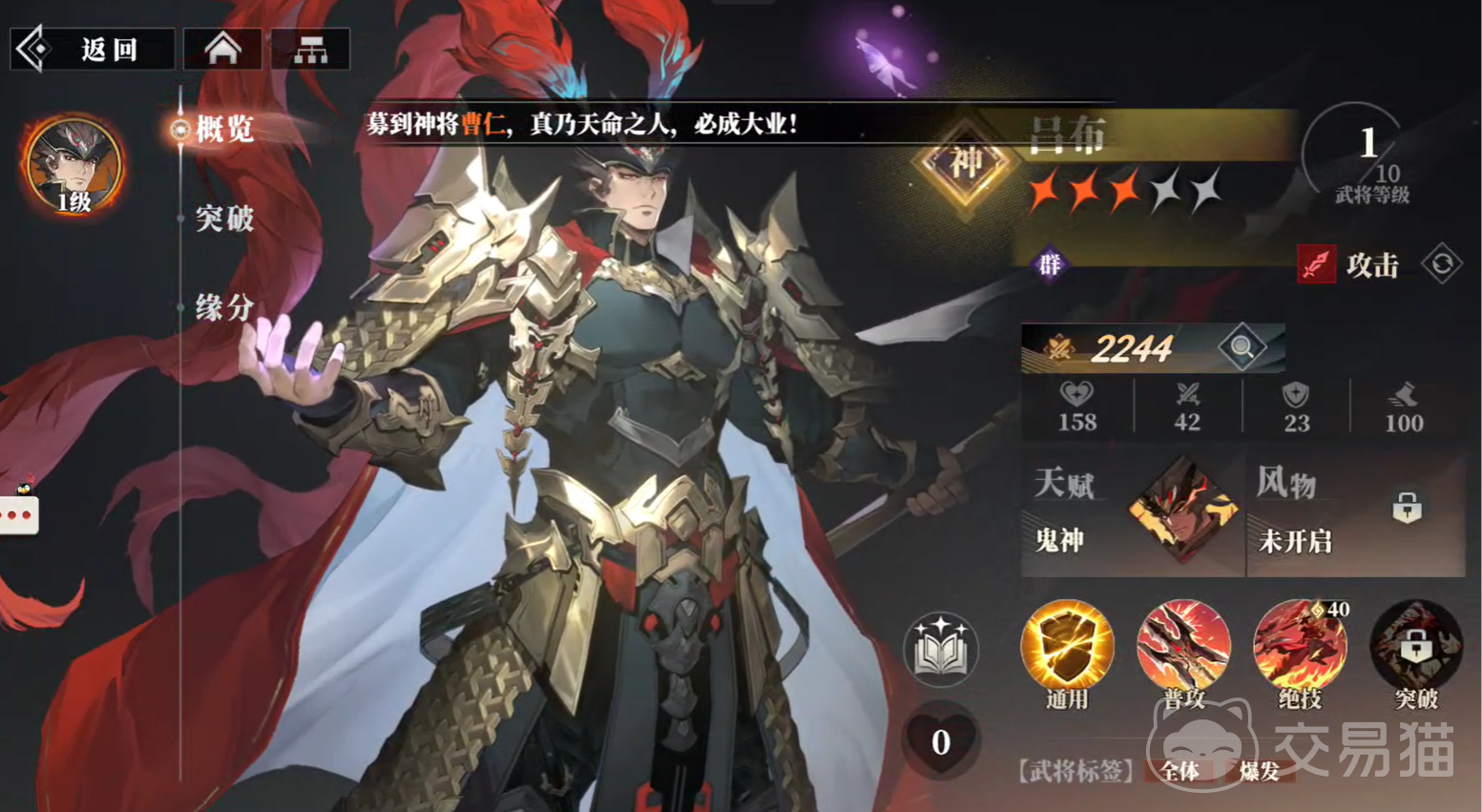再来看一下这个卡池中有哪些武将值得大家抽取?其实这里更推荐大家抽取吕布,因为他作为名将之一,拥有极高的全体范围的爆发攻击伤害。对于前期新手来说可以无脑入手并培养,因为它的属性值尤为强悍。大招还可以直接攻击对方血量最低的人,收割能力很强。