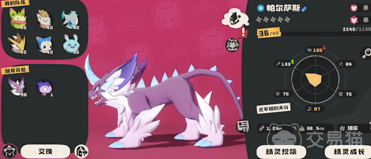 龙息帕尔的精灵特性是在击败敌方精灵的时候,敌方额外损失1点魔力,能让对方随着战斗的推移,越来越处于不利局面,从而加速终结对战。当然,得搭配合适的技能才有这样的效果。
