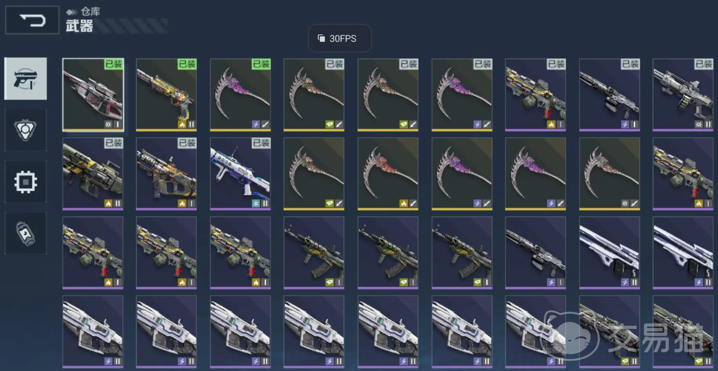 另外仓库中的第一个选项就是武器,这里只需要点击武器的图标就能够查看这把武器的属性或者效果。然后仓库中的武器品质也分为几种,最极品的便是橙色武器。然后以此算下来的话就是紫色,当然还有蓝色品质,不过这种相信大家早就将其分解了。