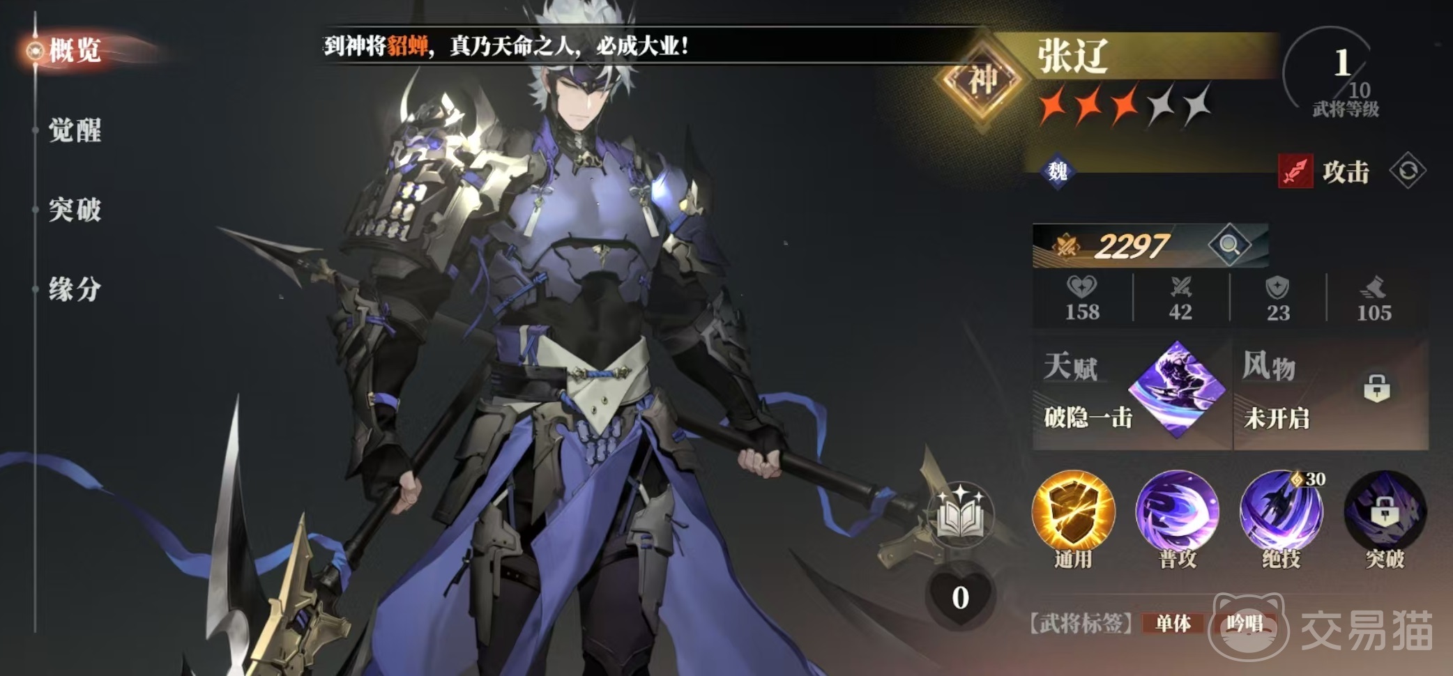 最后是魏国阵营,小编推荐的是张辽和典韦。张辽是目前真正意义上的主c输出,它的绝技有高额单体物理伤害,天赋使得绝技吟唱时获得隐匿效果。隐匿能够带来增伤加成和无法选中等特点,典韦优势在于有多个技能可以选择,技能效果在推图时有很好的表现。