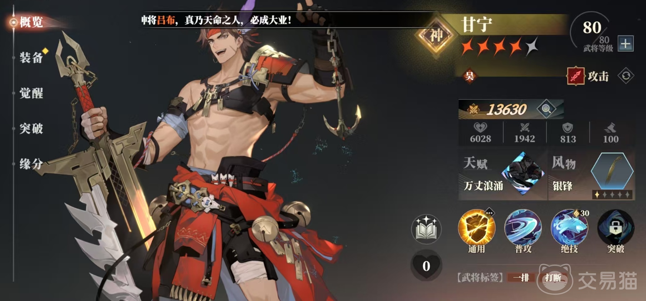 接下来是吴国,最推荐的是孙尚香和甘宁,这二人也被称为开荒时期最佳搭档。二人绝技都是属于横排伤害。孙尚香绝技特点是自身增益状态如果比敌方多,那么将获得额外增伤。甘宁绝技特点是对最右侧敌方有额外暴击率加成,另外甘宁天赋在使用绝技后还可以附加噬浪效果,通过叠加可以造成高额间接伤害。