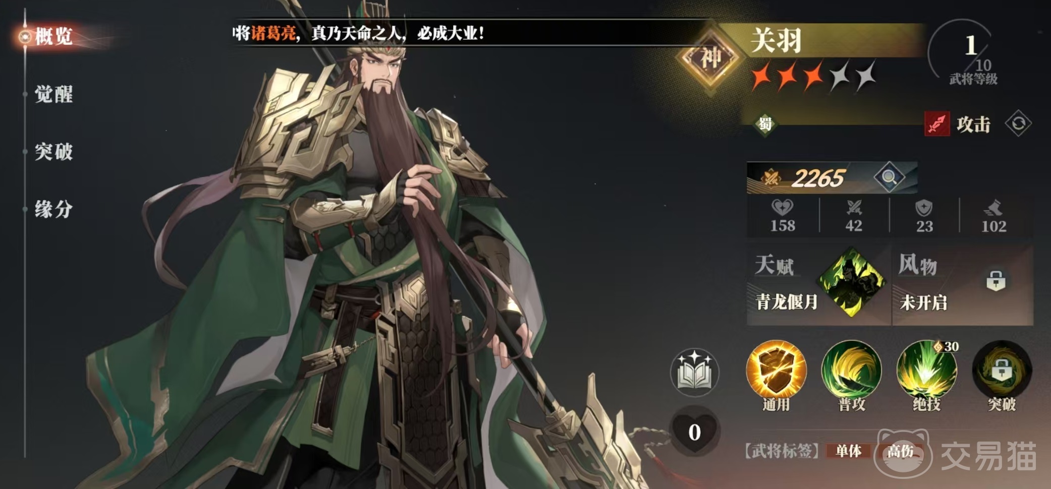 因为大家在进行搭配的时候都是考虑到阵营加成,所以小编也按照阵营来进行划分。在蜀国阵营中,最值得推荐的两个攻击武将分别是关羽和赵云。关羽的绝技可以对敌方任意目标造成高额物理伤害,此次攻击还能获得额外的增伤。自身天赋在绝技造成伤害后会锁定攻击目标,之后对该目标的所有攻击都必定暴击。这样在单体输出方面就非常狂暴。赵云绝技对敌方任意一列造成物理伤害,龙胆层数越高,本次技能暴击伤害也就越高。自身天赋在攻击之后,如果攻击列仍有敌方存活,则冲到该列空位处,对空位相邻其它单位造成额外伤害并获得龙胆。