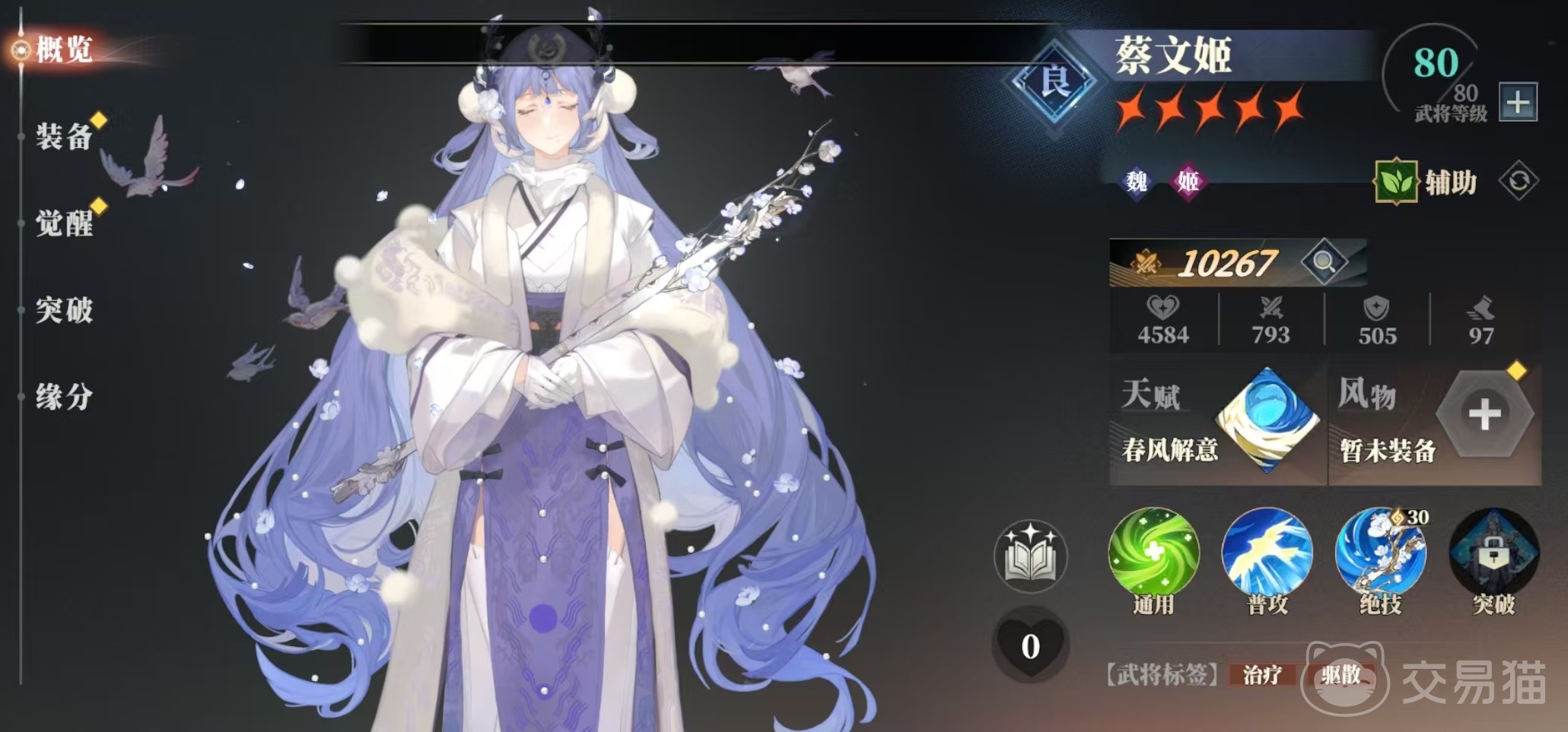 第1个推荐的是蔡文姬,虽然蔡文姬是蓝卡,但是它的强度非常高,自身绝技可以给友方目标进行高额治疗,然后为相邻友方驱散一个减益效果。这样加血和驱散就结合在了一起,自身的天赋使得绝技能够额外给友方目标和相邻单位获得梦泽。梦泽能够带来高额伤害减免,是给前排主t加血的不二之选。蔡文姬本身品级较低,培养起来也相对简单一些。