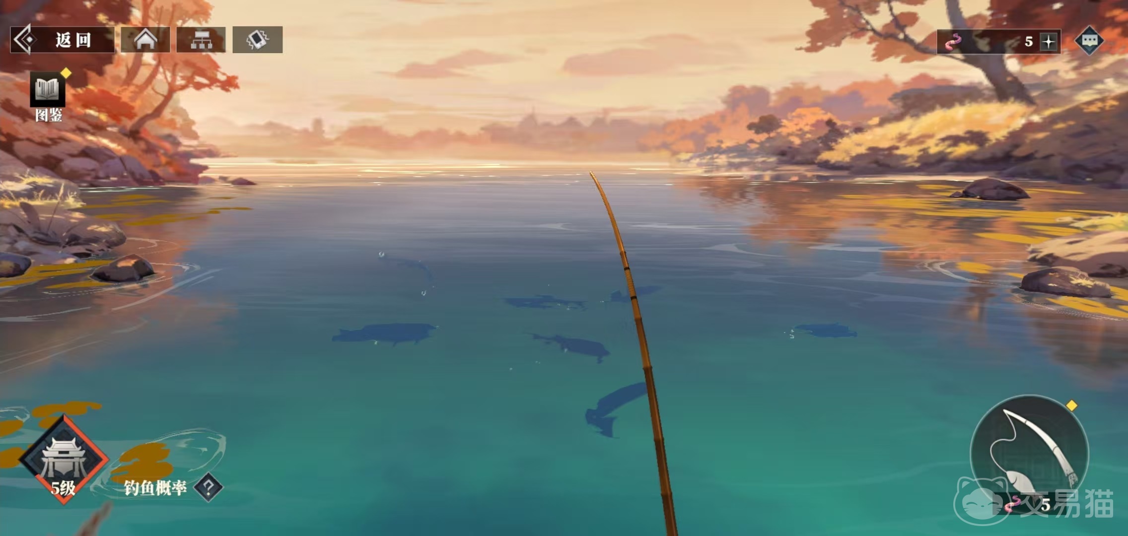 首先大家在游戏主页面中点击三山里,在里面可以看到有很多不同的活动,垂钓就是其中之一。点击进入垂钓之后,就可以进入到当前的钓鱼页面。这里面钓鱼不需要进行额外操作,只需要有足够的鱼饵,然后直接点击屏幕右下角的钓杆图标,就可以自动下杆了。鱼上钩之后也不需要进行额外操作,会自动将鱼竿收上来,然后获得本次的收获。每次钓鱼可以一次性投入5个鱼饵,然后获得5条鱼。每钓到新鱼之后,就会在图鉴中激活,激活之后能获得一次货币奖励。