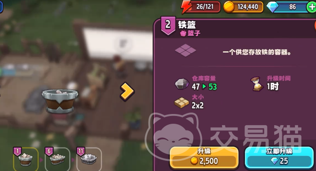 当大家在升级的时候也有一些小技巧,可以根据游戏里面的资源去获取,然后就合理的安排升级的顺序。如果一开始着急需要铁块去完成任务或者是打装备,就可以选择先集中升级其中的一个篮子。如此就能快速的得到所需要的铁块,要是时间比较充裕,也可以选择一个个去升级,如此就能稳步的提升容量。