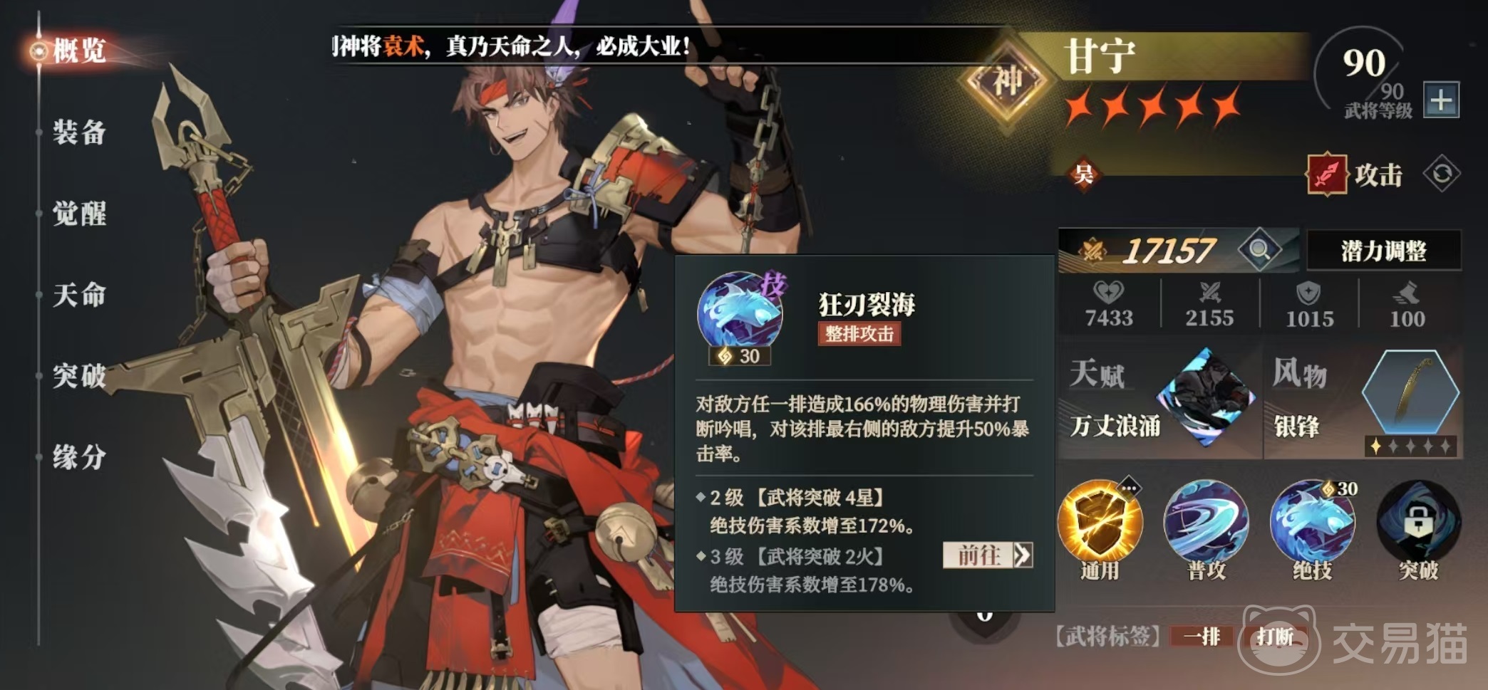 如果孙尚香和甘宁都使出自身的绝技,那么一整排敌人有可能直接被秒掉,孙权带来的战意消耗减少等增益,可以大幅度加快这二人的输出节奏。另外两名角色当然少不了治疗和单体伤害,单体伤害方面曹操就已经完全够用,不需要再使用其他的武将。治疗可以选择步练师师来给团队加血,如果没有步练师,貂蝉或者是蔡文姬等也都非常适合。