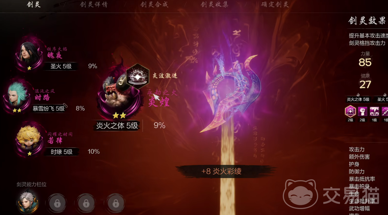 在游戏当中,适配的角色有弓箭手和短刀,并且,由于技巧和属性值双属性增加,在游戏内,可以作为短刀前期的主要核心剑灵存在。