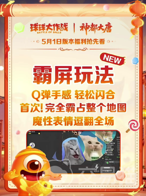 值得一提的是,游戏针对竞技模式内的玩法内容,进行了升级,为玩家增添了霸屏玩法,玩家只需在游戏内不断提高自己的比分,就可以使用魔性的表情包,填充整个赛场。