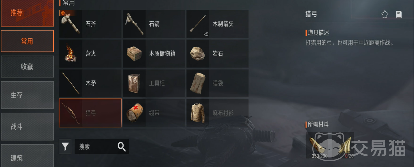不过光靠木质箭矢大家无法进行攻击,这时还要依靠猎弓或者其他的弓箭。再点击弓箭就可以进行制作了,建议大家先将弓箭制作出来。这时在制作大量的箭矢,就可以让玩家在战场中灵活的猎杀怪物了。