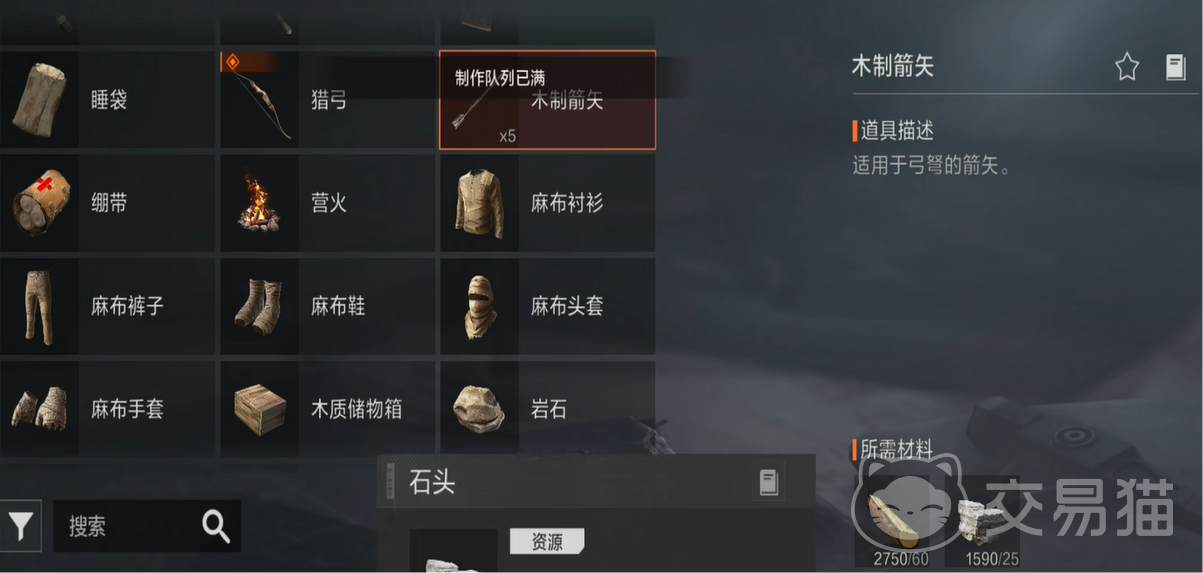 接着就可以直接点击游戏页面左下角的制作,进去之后就可以查看当前可做的各种物品。其中就包括木质箭矢,点击之后就会发现这种道具需要一些木材以及岩石。当大家准备好这些材料之后,就以输入自己想要制作的数量,然后就能够一键生成了。