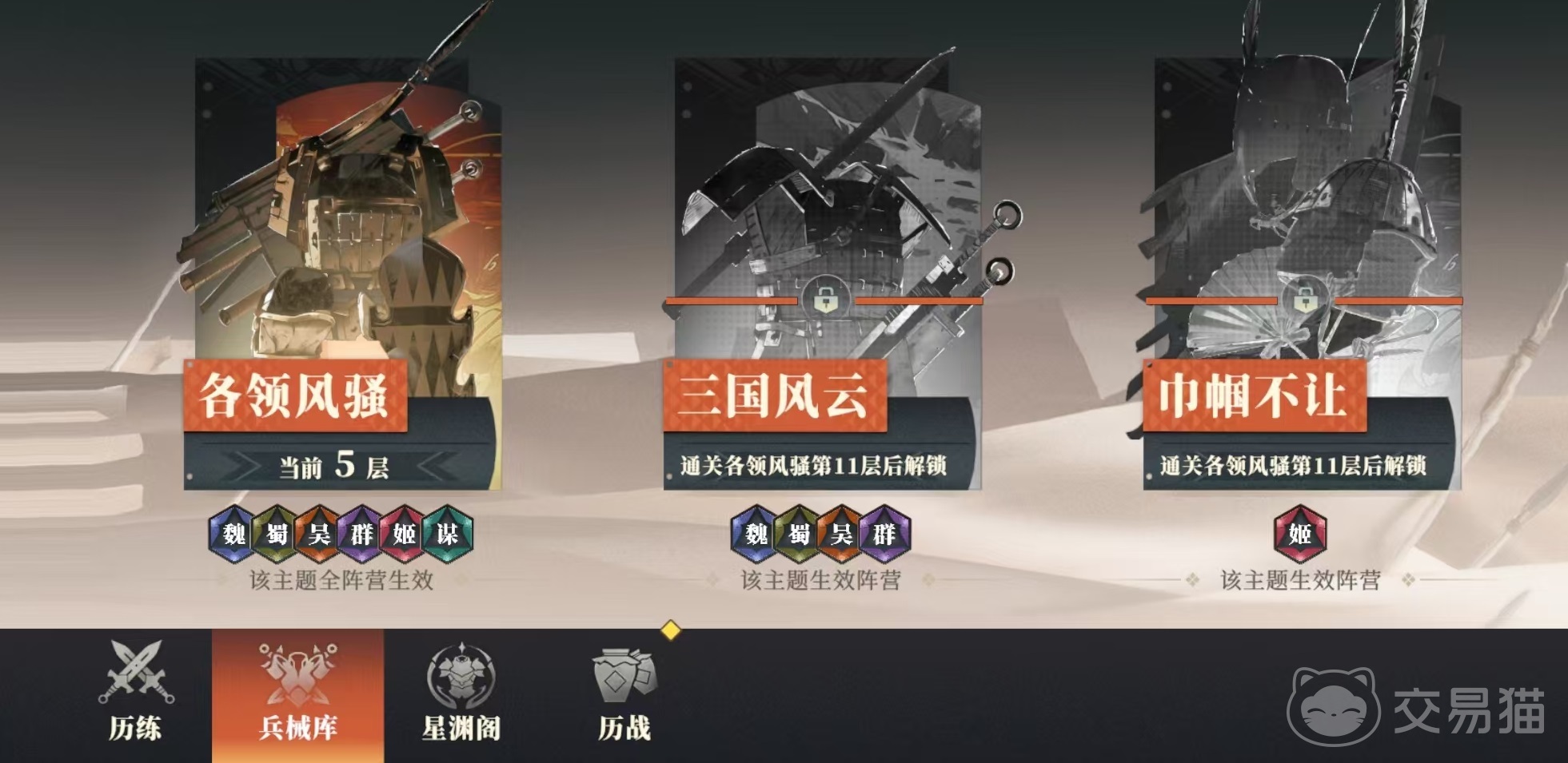 星渊阁是属于组队玩法,如果能够集齐4个光环,那么可以获得额外加成,要根据挑战层数需求去进行阵容搭配。历战是属于单人活动,要根据挑战的目标特点,选择合适武将,例如现在开放的是王匡,他会召唤出很多小弟,推荐带有群体伤害的武将战斗,这样效率更高。