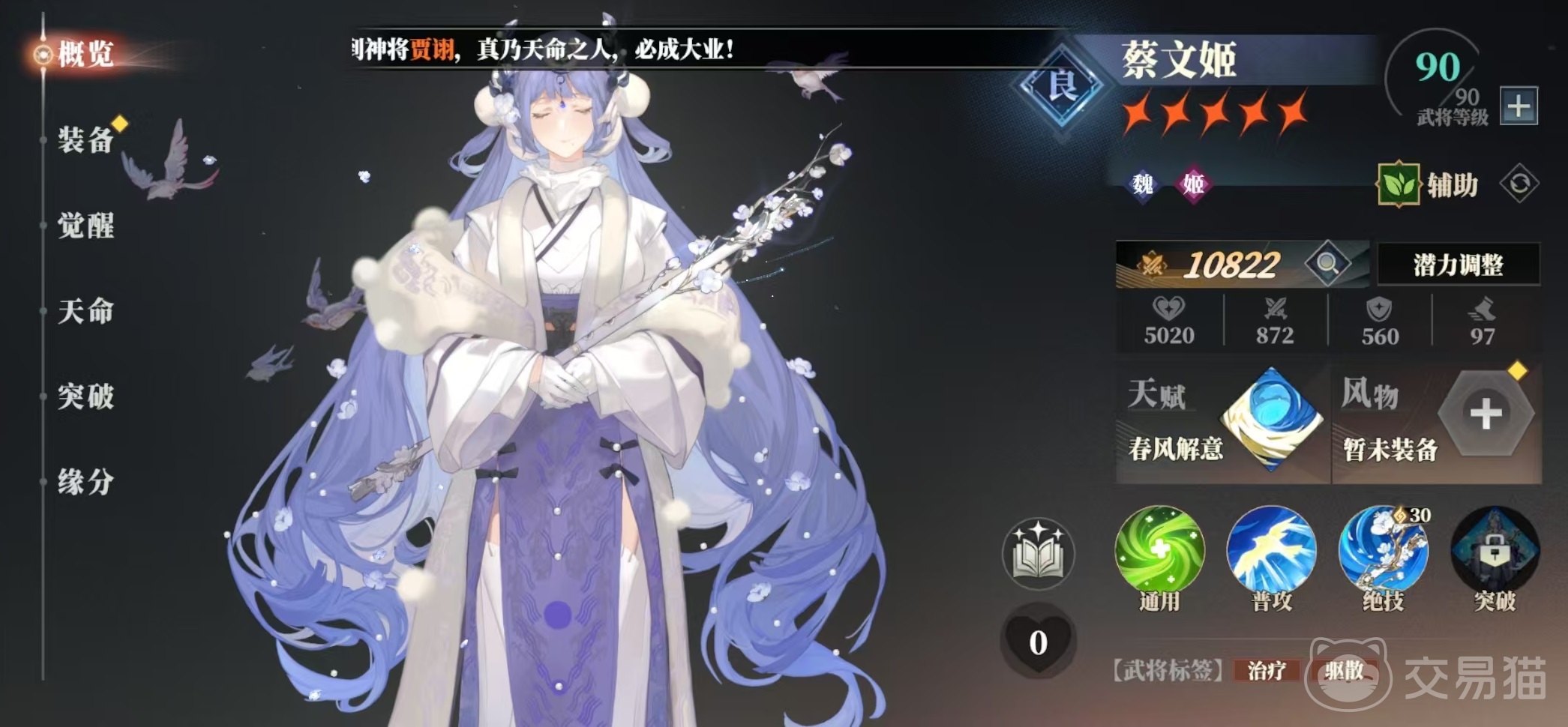 乐进也是一开始就可以获取到的武将,他的绝技造成群体伤害,在突破之后天赋增伤甚至可以直接分享给同排的友方目标,这样一来不再是自身输出可观。同排友方的输出也能进一步加强,性价比很高。接下来是孙开朗和蔡文姬,孙开朗的优势在于有着非常强的驱散能力,这样在一些战斗关卡中就可以起到重要的作用,自身在培养起来之后坦度也比较高,适合作为前排。蔡文姬治疗能力出色,在治疗的同时还可以为友方驱散减益效果。
