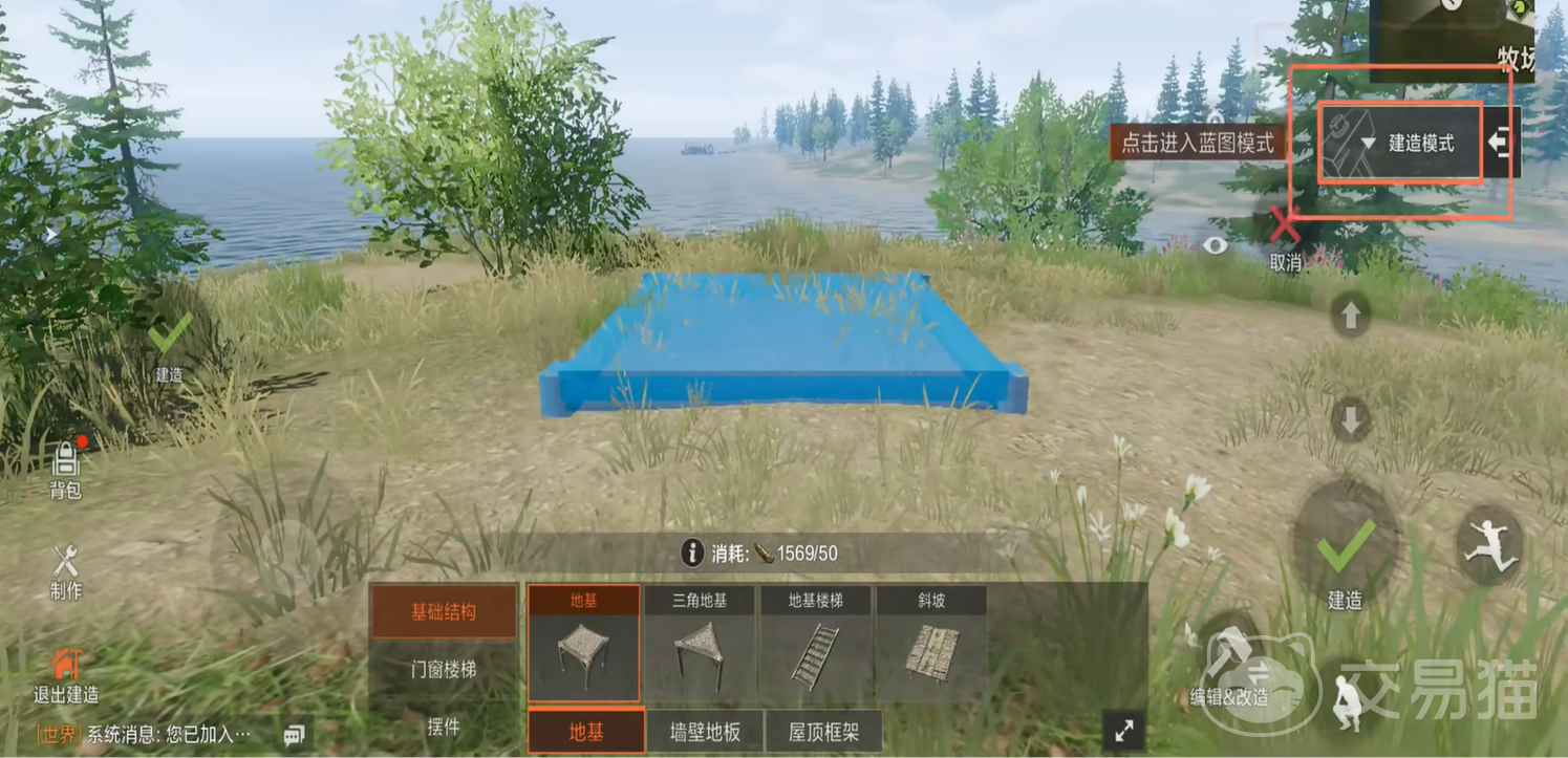 所以这时要优先打造一个基地,基地来说的话需要砍伐大量的木材。这时只需要努力的用自己手中的工具迅速的砍伐周围的树木,当你的木材数量达标之后,就可以直接点击页面左下角的建造。建造虽然说是可以制作基地,但是里面的各种家具的话,还是要在制造页面获取。