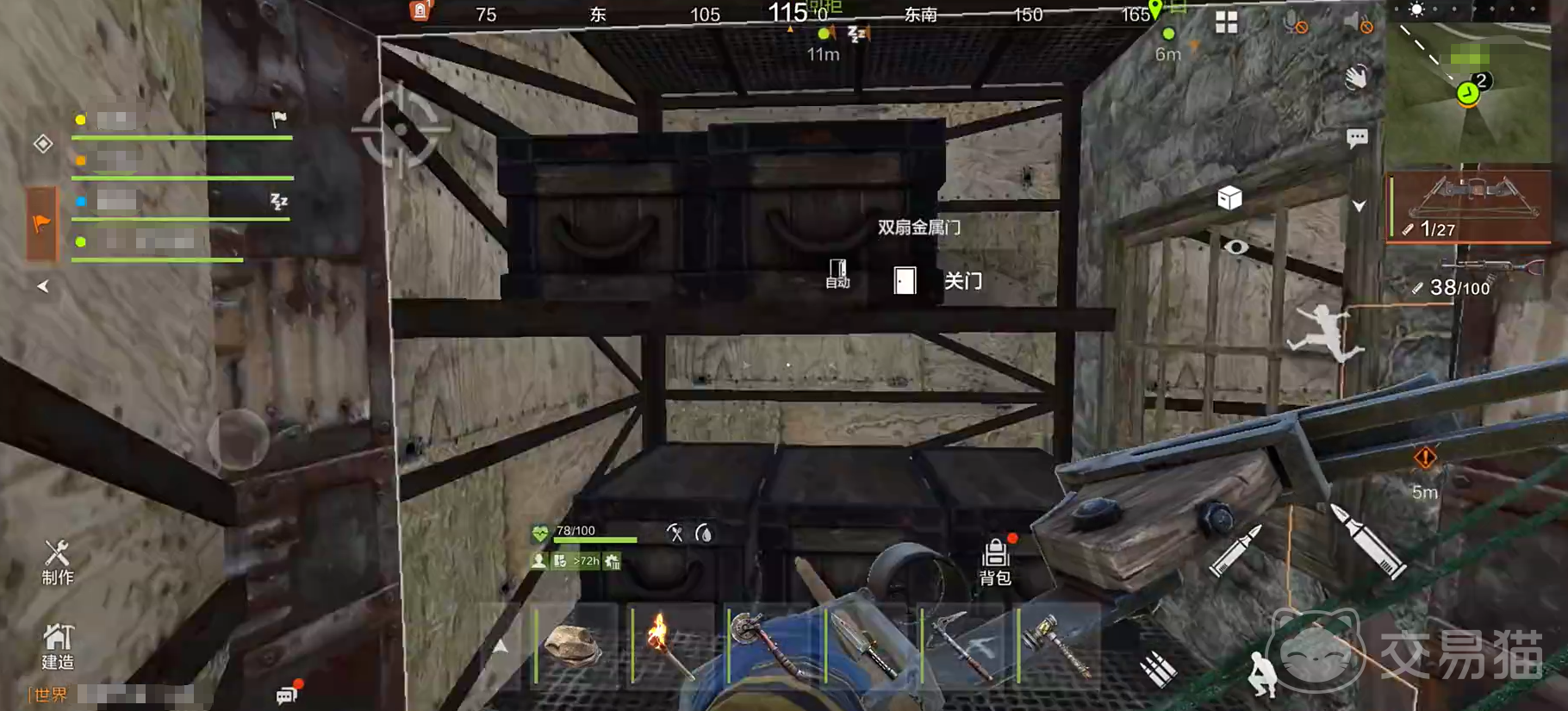 当你成功组好队之后,左边就会显示当前在线的游戏玩家。如果组队的人数为四的话,那就会显示包括你在内的4个玩家名字。同时还会出现他们的血量还有状态,一般来说刚开始一个人自己打造基地的话会很慢,因为要收集大量的材料。