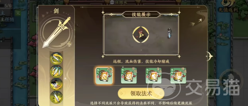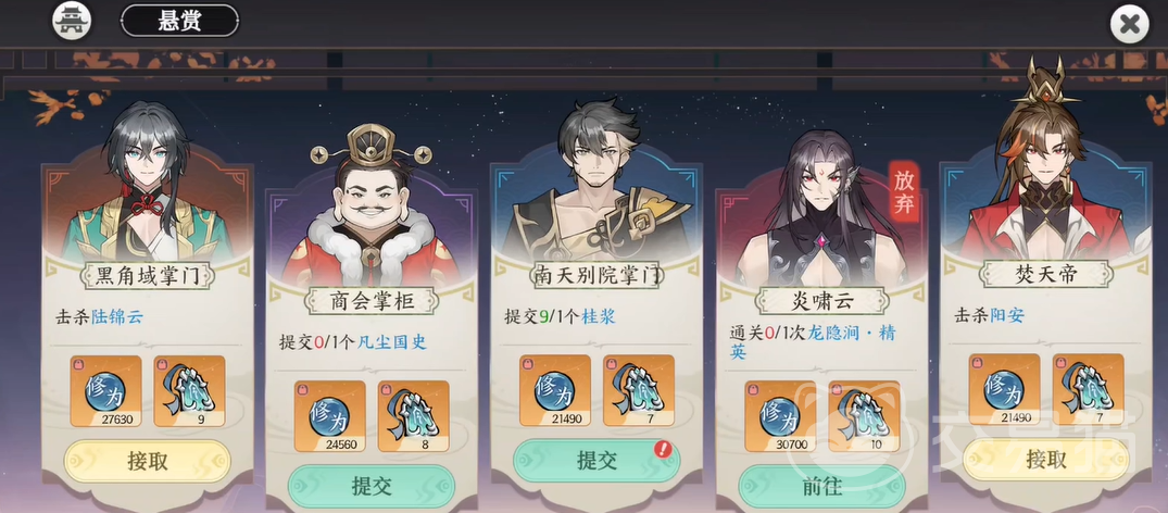 接着到城主这里领取一套职业技能,这套技能推荐选择木剑流派,木剑流派的单独爆发很强,在刷副本的时候表现明显,最后就是接取悬赏,击杀悬赏一个任务基本上获得1万修为,这个修为基本上能让玩家们顺利升到金丹期,再搭配丹药升级速度飞快。