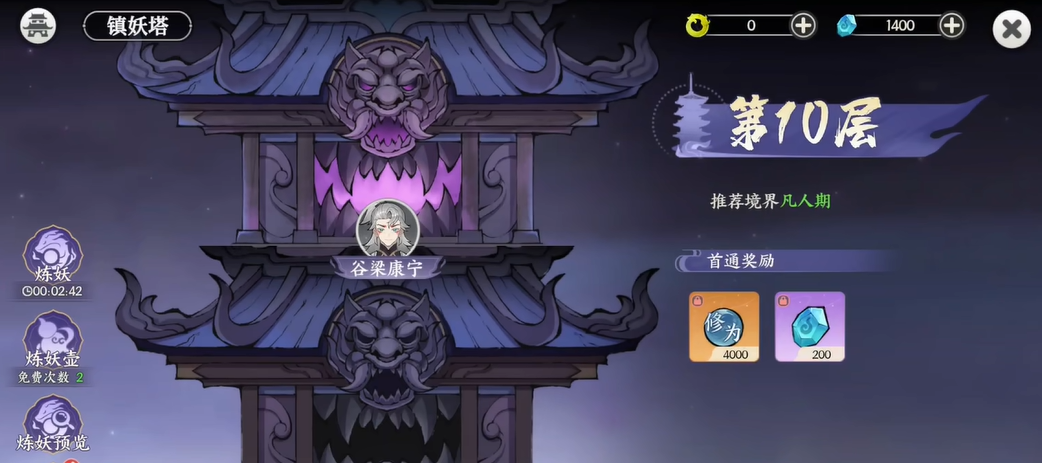 接着就是打副本了,打副本的顺序主要是主线和镇妖塔互相进行攻打,主线副本有时候会出现等级要求,而等级不够的话就去闯镇妖塔提升等级,当镇妖塔某一层打不过的时候,就可以去主线副本完成任务,这样相互循环的情况下,能最大程度提高升级的速度。