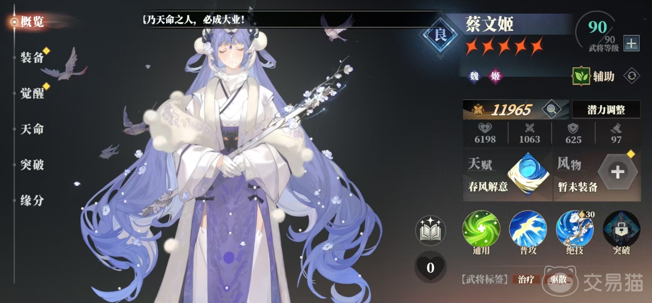 在后排治疗方面选择蔡文姬就可以,蔡文姬也是前期直接就可以拿下的卡,绝技治疗量比较出色,还可以驱散减益。天赋带来的伤害减免也能够提升队伍的强度。输出再加上一个郭嘉,如果没有,使用孙尚香或者是甘宁也是可以的。