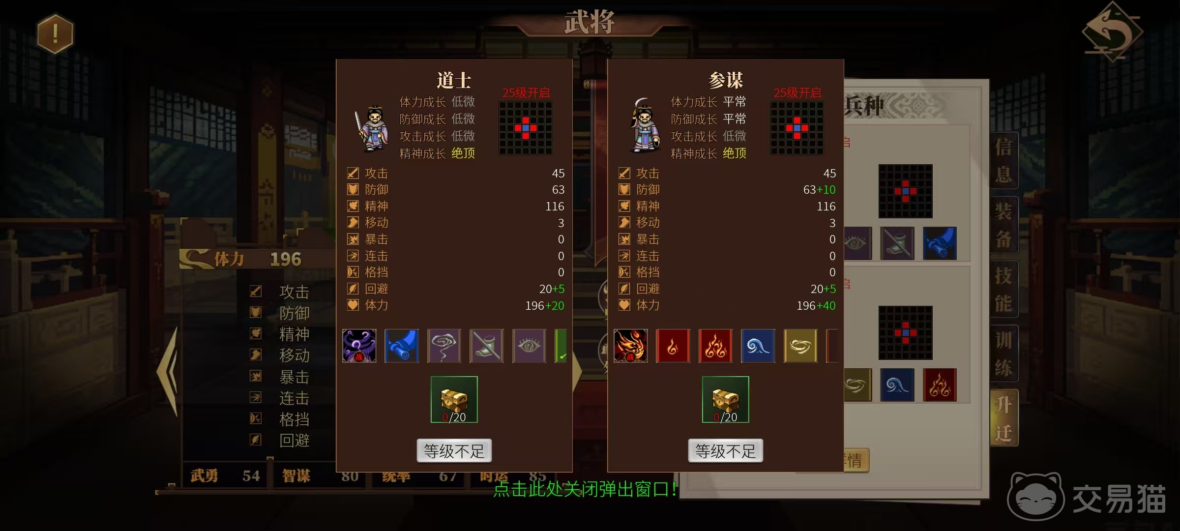 所以减简雍虽然自身的伤害不高,但是带来的各种状态,可以给队伍在战斗中赢得不小的优势。它的特性是诡变多端,每回合能恢复最大策略值的5%,受到的回复策略效果降低10%。在后续升迁的时候,有道士和参谋这两种不同的方向。道士的体力成长低微,防御成长低微,攻击成长低微,精神成长绝顶。参谋的体力成长平常,防御成长平常,攻击成长低微,精神成长绝顶。