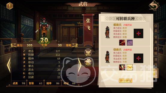 最后就是升迁,可以消耗军资能让武将完成升迁,升迁后就能选择不同的转职方向,这样武将在技能和属性上的差异就会发生变化,能选择突出优势,或者是弥补缺点的转职放心,同时也需要考虑阵容搭配因素。