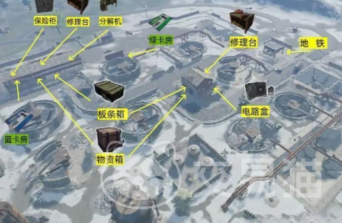 开始闯的时候大家需要从第一据点也就是污水处理厂开始探索,这第一个据点当大家开始探索的时候,需要从地铁位置进入,在进入其中后需要先来到右手边,在这里可以看到一个修理台,这地方可以修理后续掉耐久度的装备,之后从这里出来后需要往前方走,走到前方后可以看到绿卡房,刷卡进去后可以拿到奖励,之后需要继续往前来到前面的仓库中,在这个仓库中可以找到多个物资箱和蓝卡房,需要刷卡拿完奖励,之后需要往左下方走,走到下方以后可以拿到一个电路盒,拿到后这第一个据点就探索完了。