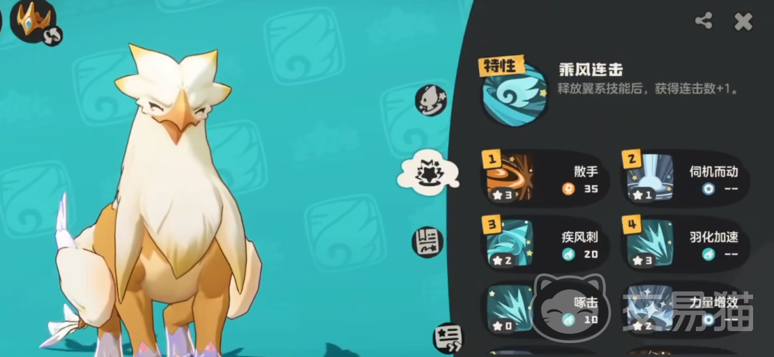 皇家狮鹫的3维比大多数PVP向的主C都要高,151的攻击,125的速度,体力也不低。特性是释放翼系的技能后获得连击数加1。因此技能搭配建议用散手、伺机而动、疾风刺、羽化加速。