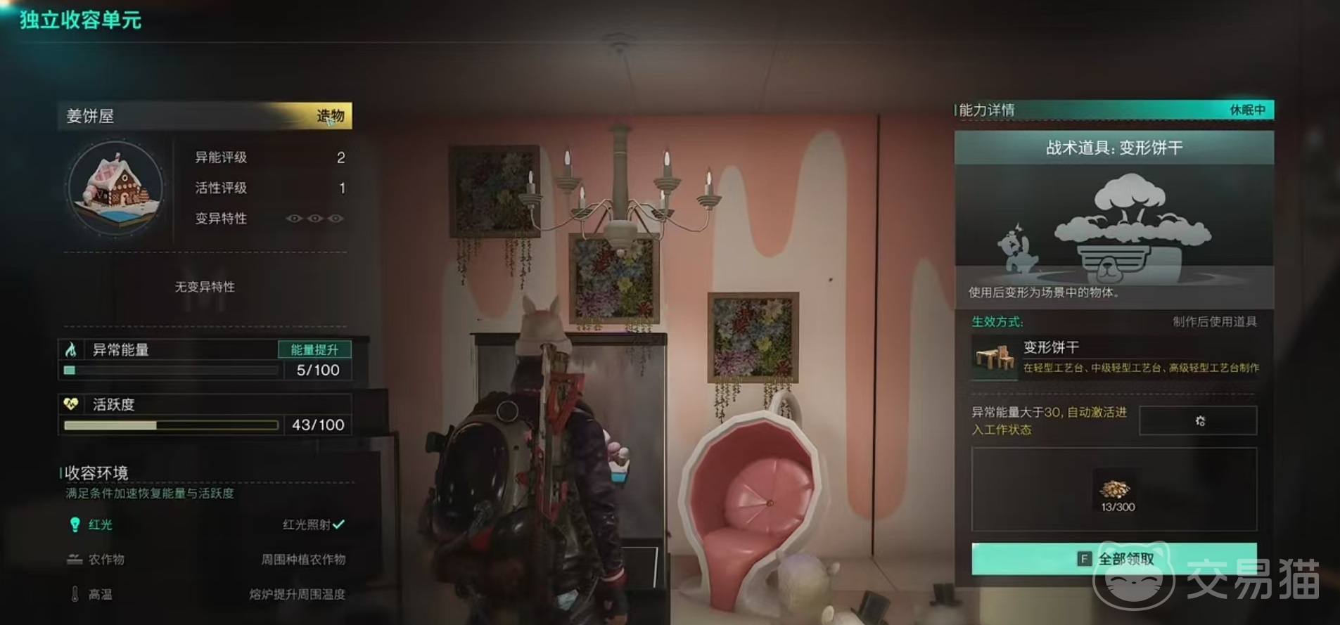 第2个途径是先选择前往内海传送塔,然后再传送点直接潜入水中,通过潜水快速抵达海滩右侧,上岸之后向右行,在海滩上可以发现迪斯科球和姜饼屋的异常圆球,靠近之后就可以收容了。找到之后,接下来就是让它发挥出作用,姜饼屋的特点是可以产出饼干碎屑素材,然后在工具台中可以合成变形饼干。当玩家使用这些饼干之后,就可以变成场景中的物体,例如可以变成岩石、家具或者是树木等。