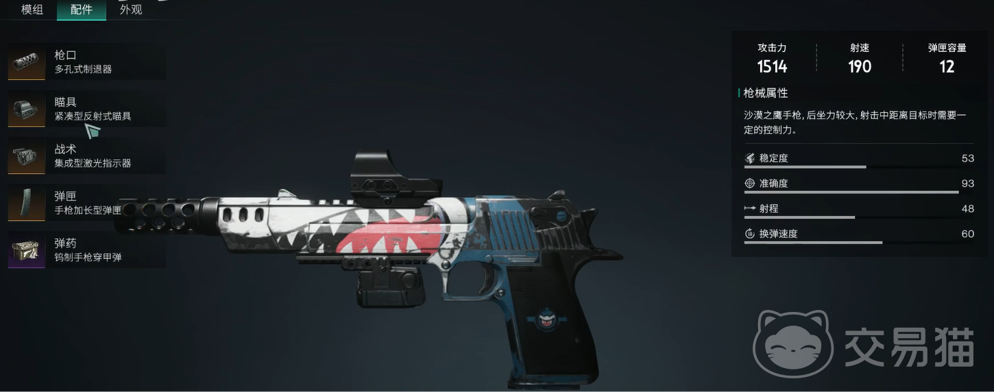 武器配件方面的话,可以使用枪口多孔式制退器+瞄具紧凑型反射式瞄具+战术集成型激光指示器+弹匣手枪加长型弹匣+弹药钨制手枪穿甲弹。由于后坐力较大,射击中距离目标时需要一定的控制力,所以必须提升它的稳定性以及精准度,并且可以提升射程和换弹速度。