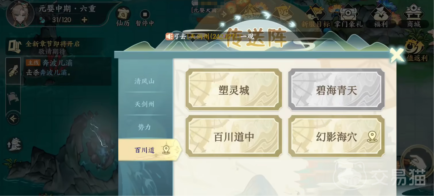有一些朋友第一次做任务,刷了幻影海穴之后,之后再想要刷的话却发现找不到位置了。掌门下山幻影海穴在哪?其实它的位置就位于远海的地图当中,想要找到的话可以直接找到传送阵。并直接找到百川道,就可以传送过来了。