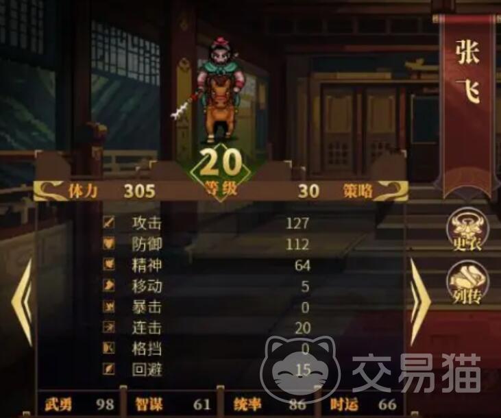 张飞:前期输出能力突出,建议将勇武属性提升至90以上,武器选择蛇矛强化穿刺伤害。转职为重骑兵后带盾牌提升格挡率,能抗能打。战斗中利用无双技能在承受敌方集火前开启,触发100%格挡效果,配合蛇矛的毒属性持续消耗敌人血量。注意优先强化武器词条,选择穿刺伤害+命中率的组合提升输出稳定性。